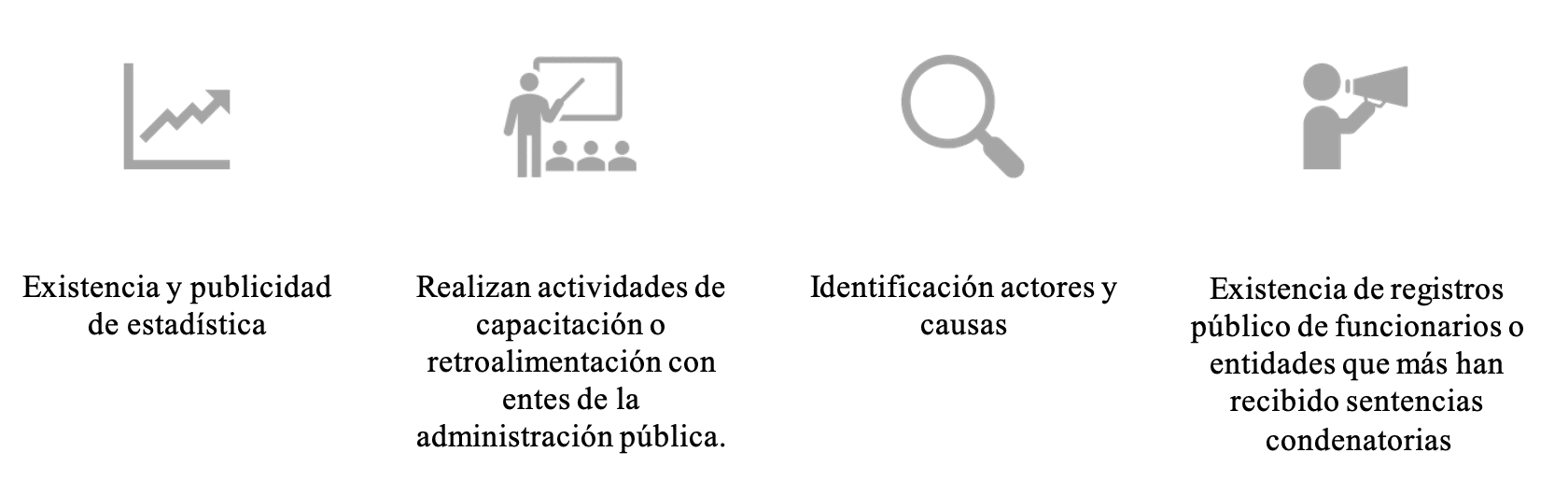 • Ninguna legislación obliga a los tribunales a la generación de información específica que permitiera identificar áreas de riesgo o actuaciones irregulares prevenibles. Únicamente existe la obligación general de generar estadística.