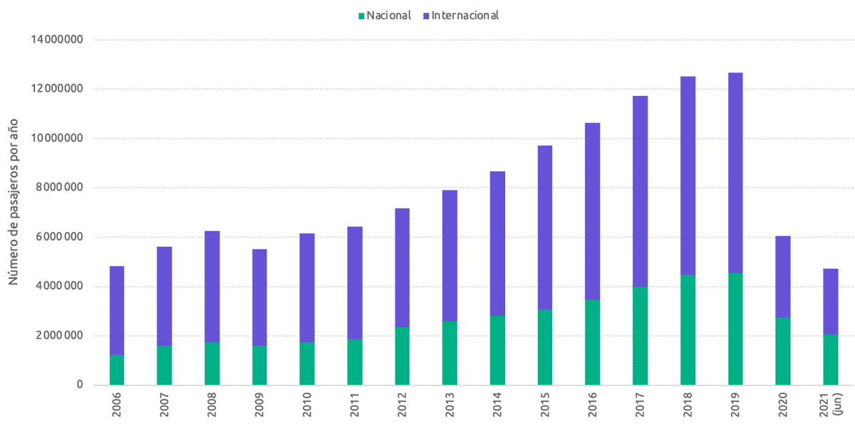 Número de pasajeros anuales por lugar de origen. Datos de 2021 hasta el mes de junio