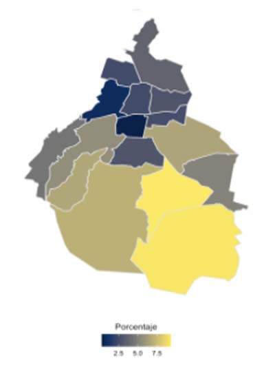 Mapa 2. Pobreza extrema por alcaldía en la Ciudad de México
