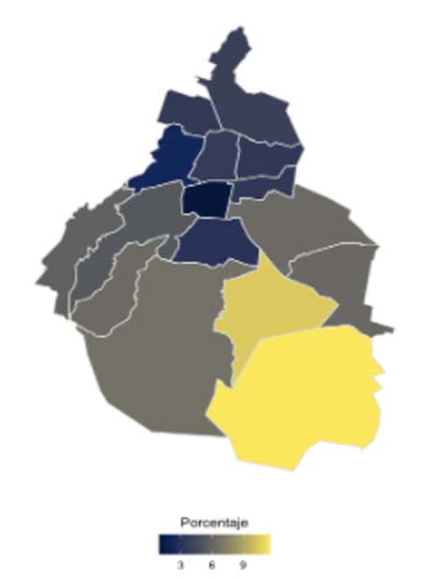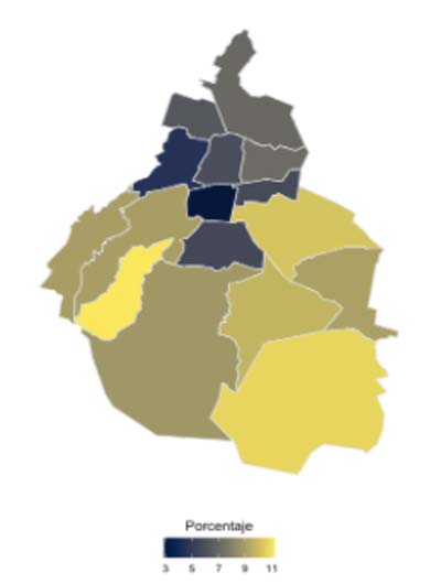 Mapa 3. Rezago educativo por alcaldía en la Ciudad de México