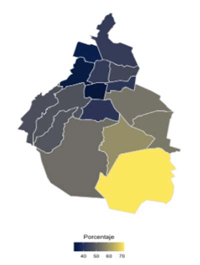 Mapa 5. Acceso a la seguridad social por alcaldía en la Ciudad de México