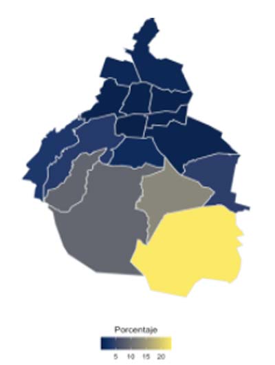 Mapa 1. Pobreza por alcaldía en la Ciudad de México