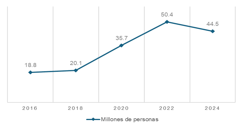 Gráfica 1. Millones de personas con carencia en servicios de salud 2016-2024 |