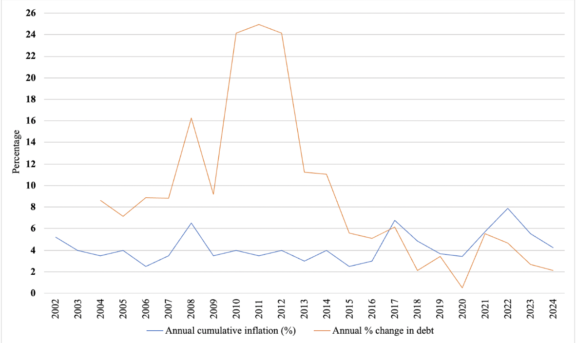 Figura 1 Deuda Subnacional vs Inflación, 2002–2024 (% de variación)