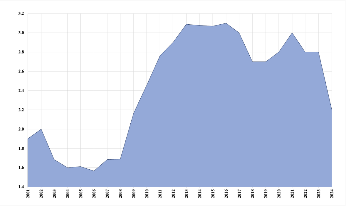 Figura 3 Deuda Total Pendiente, Estados y Municipios de México, 2001–2024 (% del PIB subnacional)