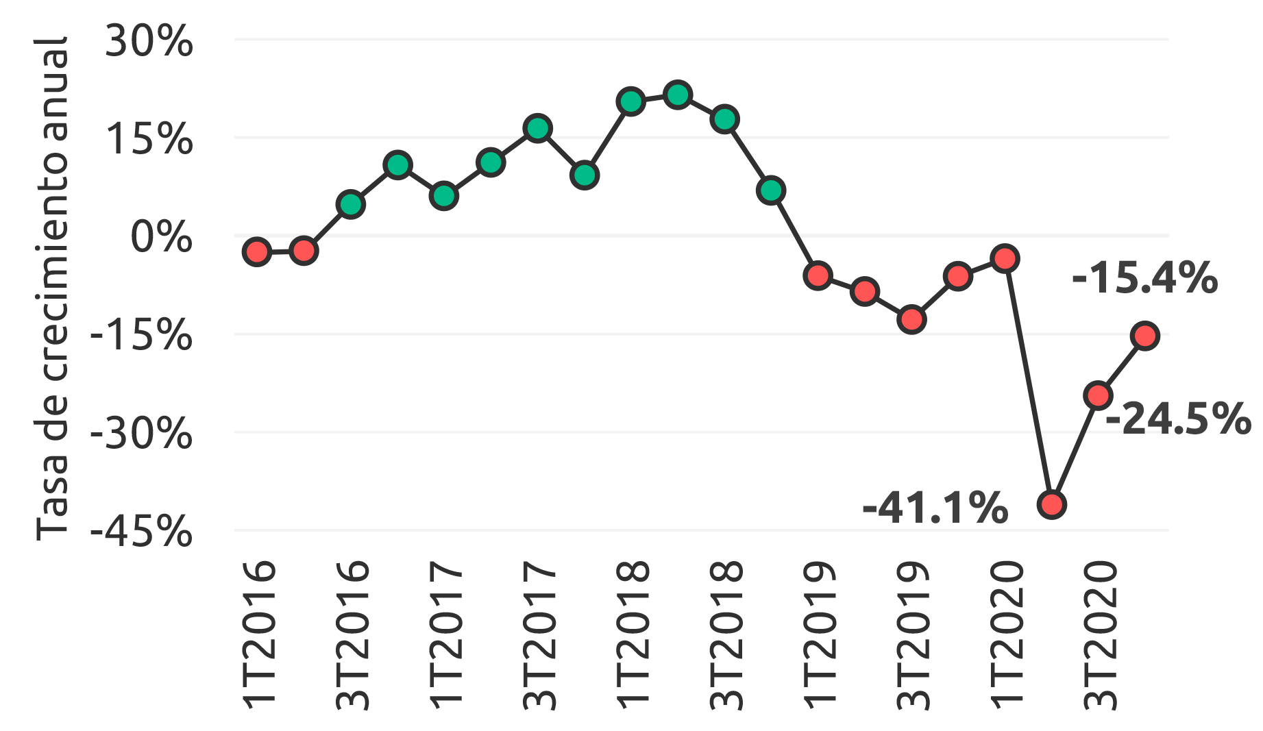 Durante 2020, la economía de Baja California Sur se contrajo (-)21.1 % anual, con una caída pronunciada en el 2T2020. Previo a esto, su economía había crecido a una tasa promedio de 5.4 % anual entre 2016 y 2019.