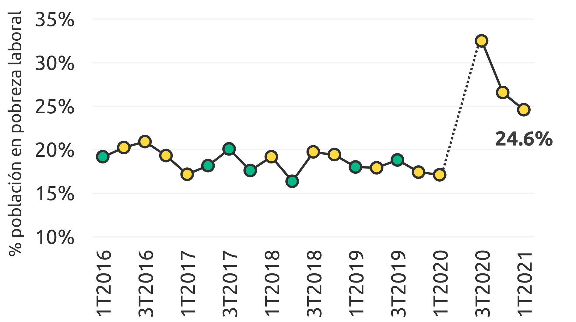 Con 24.6 % de su población en pobreza laboral (con ingresos laborales del hogar insuficientes para cubrir necesidades alimentarias mínimas), Baja California Sur es el 3er estado con mejor desempeño en México, aunque nivel aumentó 8.3 puntos respecto al 1T2020.