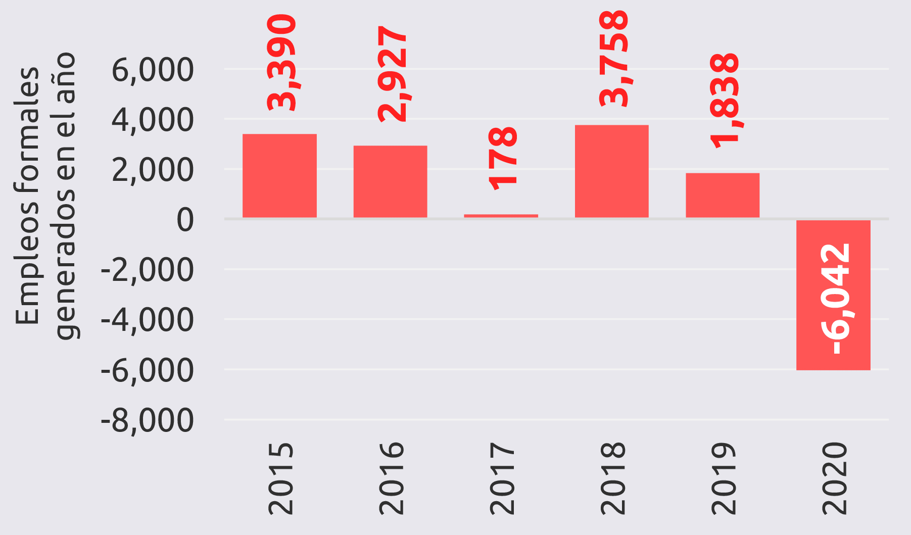 En 2020, el registro de empleos asegurados ante el IMSS de Chiapas disminuyó (-)2.7 %; fue el 14.º estado con la mayor afectación, y no generó empleos necesarios para incorporar a los jóvenes que entran al mercado laboral.