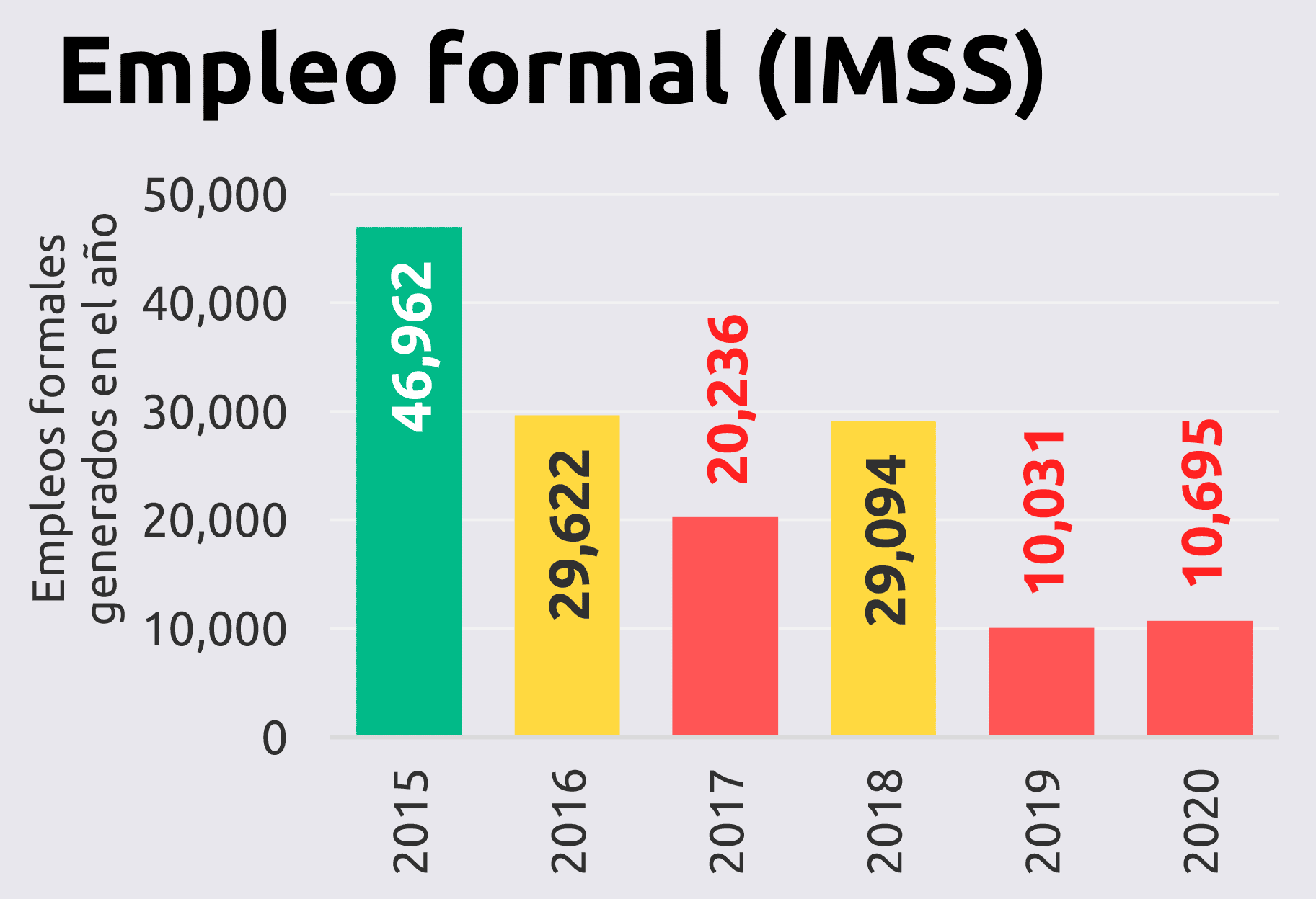 En 2020, Chihuahua fue uno de sólo 3 estados donde el registro de empleos asegurados ante el IMSS agregó puestos en vez de eliminarlos. Se generó 30 % de los empleos necesarios para incorporar a los jóvenes que entran al mercado laboral.