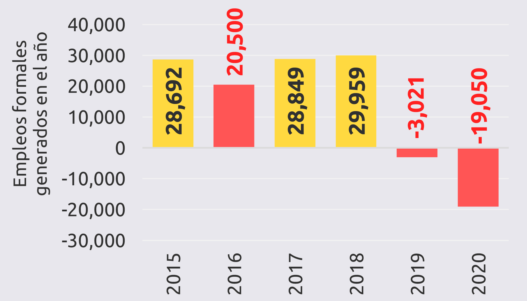 En 2020, el registro de empleos asegurados ante el IMSS de Coahuila disminuyó (-)2.5 %; fue el 15.º estado con la mayor afectación, y no generó empleos necesarios para incorporar a los jóvenes que entran al mercado laboral.