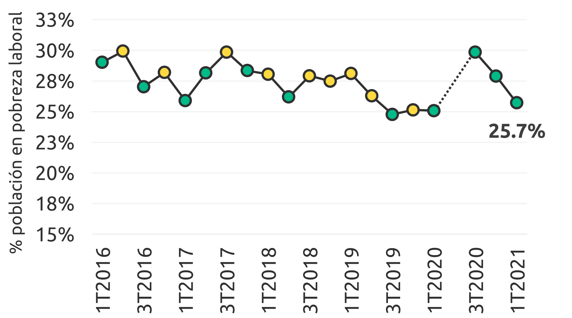 Con 25.7 % de su población en pobreza laboral (con ingresos laborales del hogar insuficientes para cubrir necesidades alimentarias mínimas), Coahuila es el 5.º estado con mejor desempeño en México, aunque su nivel aumentó 1.0 punto respecto al 1T2020.