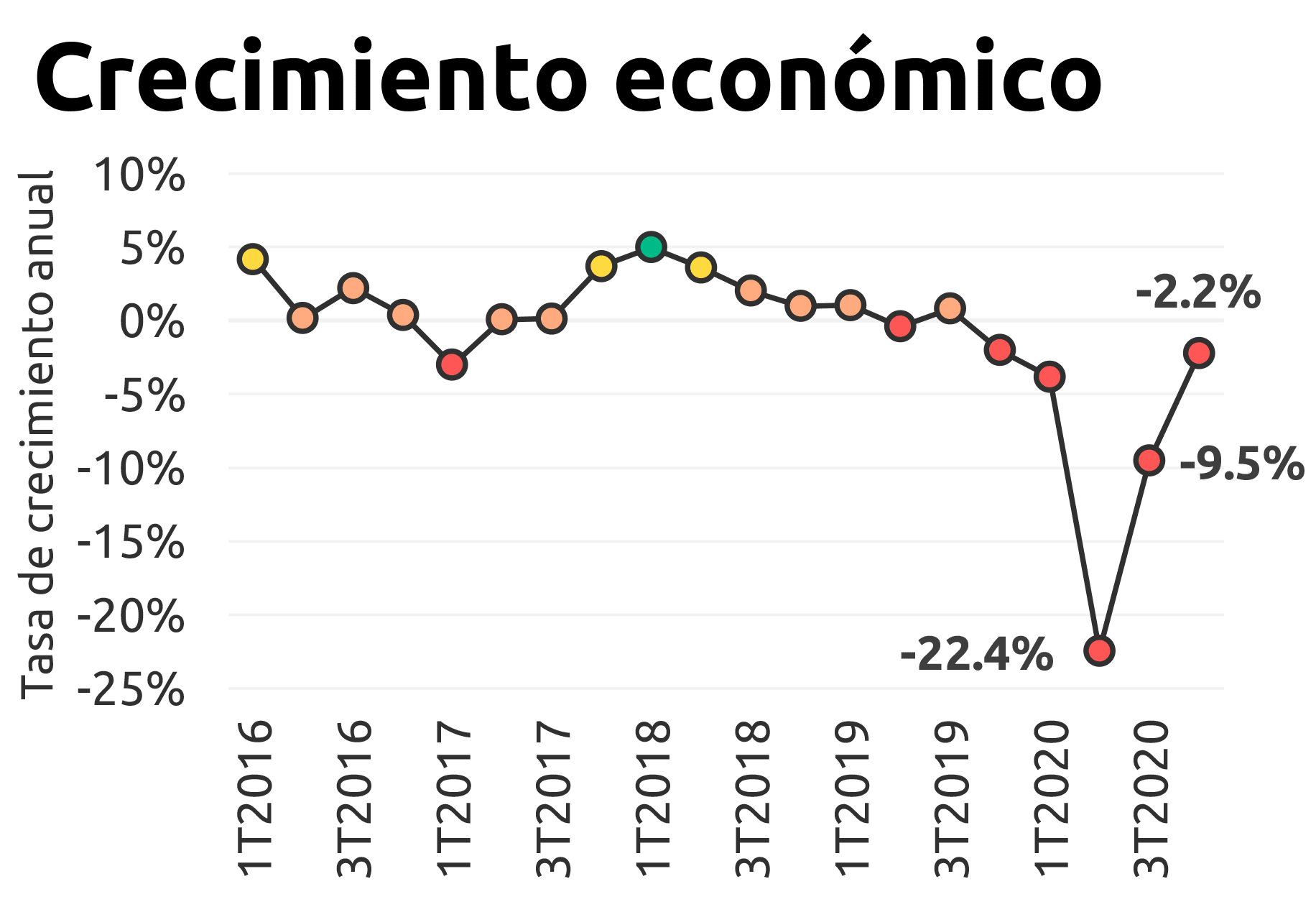 Durante 2020, la economía de Guerrero se contrajo (-)9.5 % anual, con una caída pronunciada en el 2T2020. Previo a esto, su economía había crecido a una tasa promedio de 1.2 % anual entre 2016 y 2019.