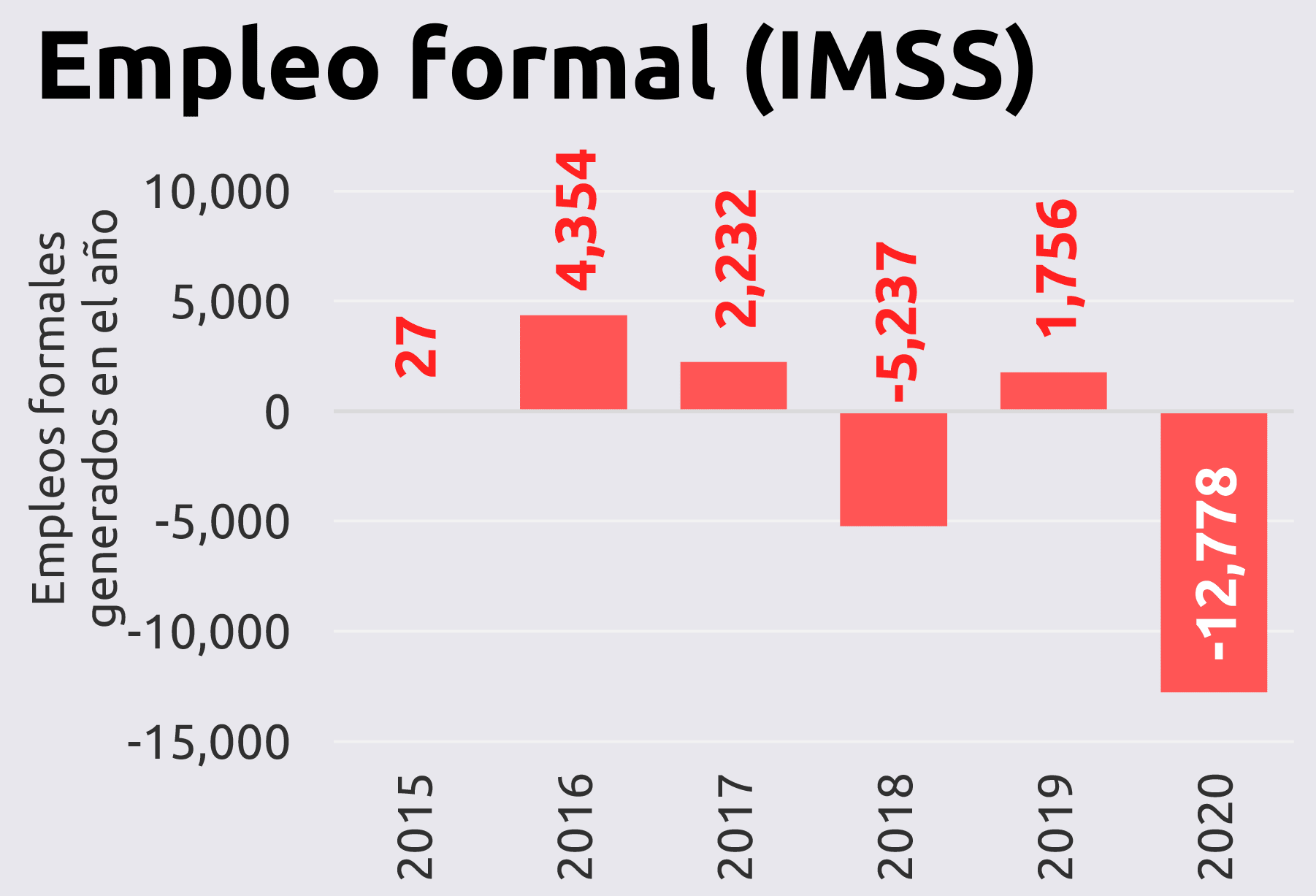 En 2020, el registro de empleos asegurados ante el IMSS de Guerrero disminuyó (-)8 %; fue el 2.º estado con la mayor afectación, y no generó empleos necesarios para incorporar a los jóvenes que entran al mercado laboral.