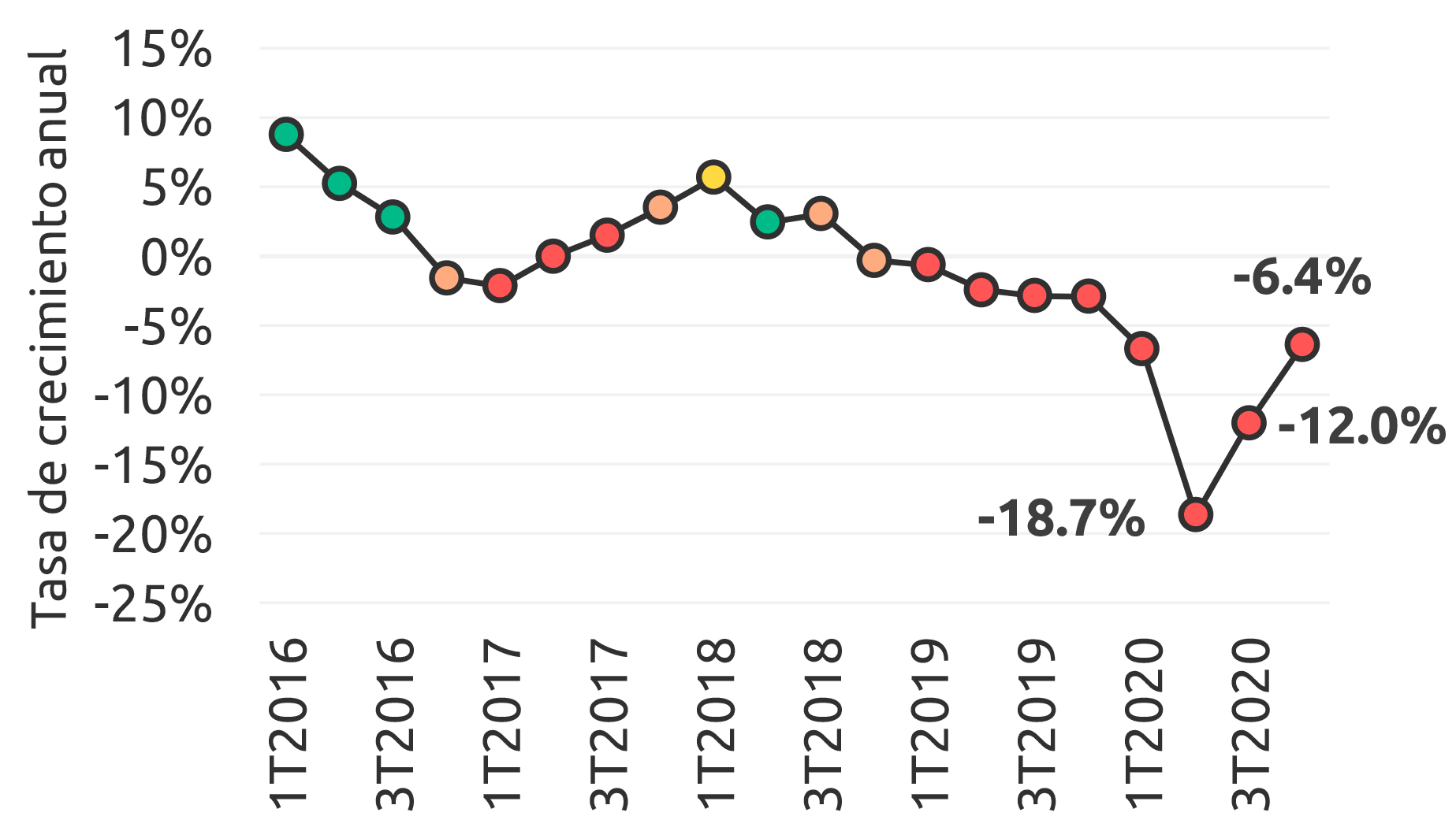 Durante 2020, la economía de Hidalgo se contrajo (-)10.9 % anual, con una caída pronunciada en el 2T2020. Previo a esto, su economía había crecido a una tasa promedio de 1.3 % anual entre 2016 y 2019.