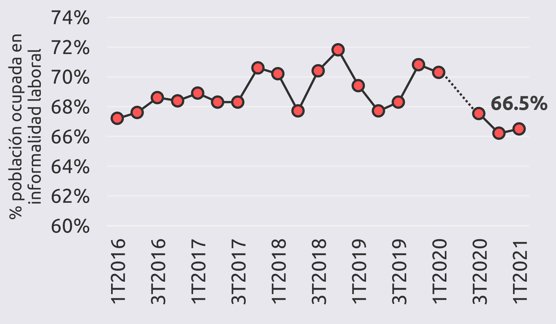 Hidalgo tiene la 4.ª tasa más alta de informalidad nacional, ya que 66.5 % de los trabajadores del estado tienen un empleo sin prestaciones laborales o vínculo reconocido. La tasa nacional fue de 50.8 % en el 1T2021.