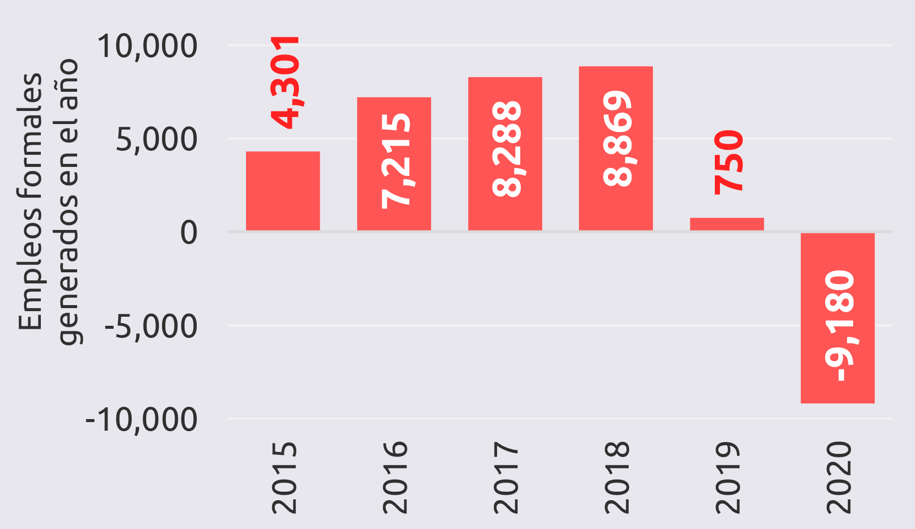 En 2020, el registro de empleos asegurados ante el IMSS de Hidalgo disminuyó (-)4 %; fue el 8.º estado con la mayor afectación, y no generó empleos necesarios para incorporar a los jóvenes que entran al mercado laboral.