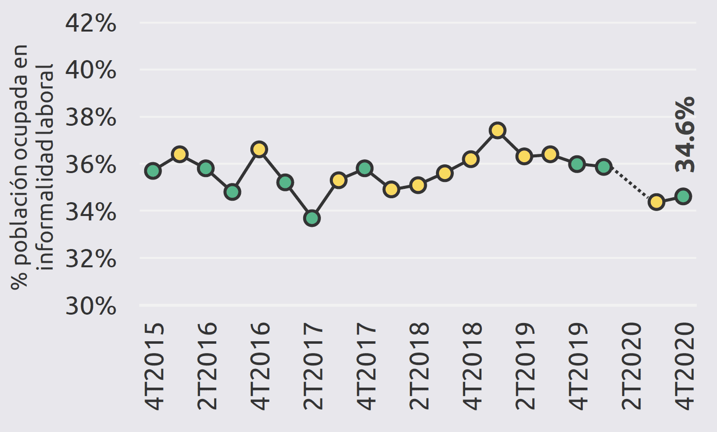 Nuevo León tiene la 2.ª tasa más baja de informalidad nacional, ya que 34.6 % de los trabajadores del estado tienen un empleo sin prestaciones laborales o vínculo reconocido. La tasa nacional fue de 51.1 % en el 4T2020.