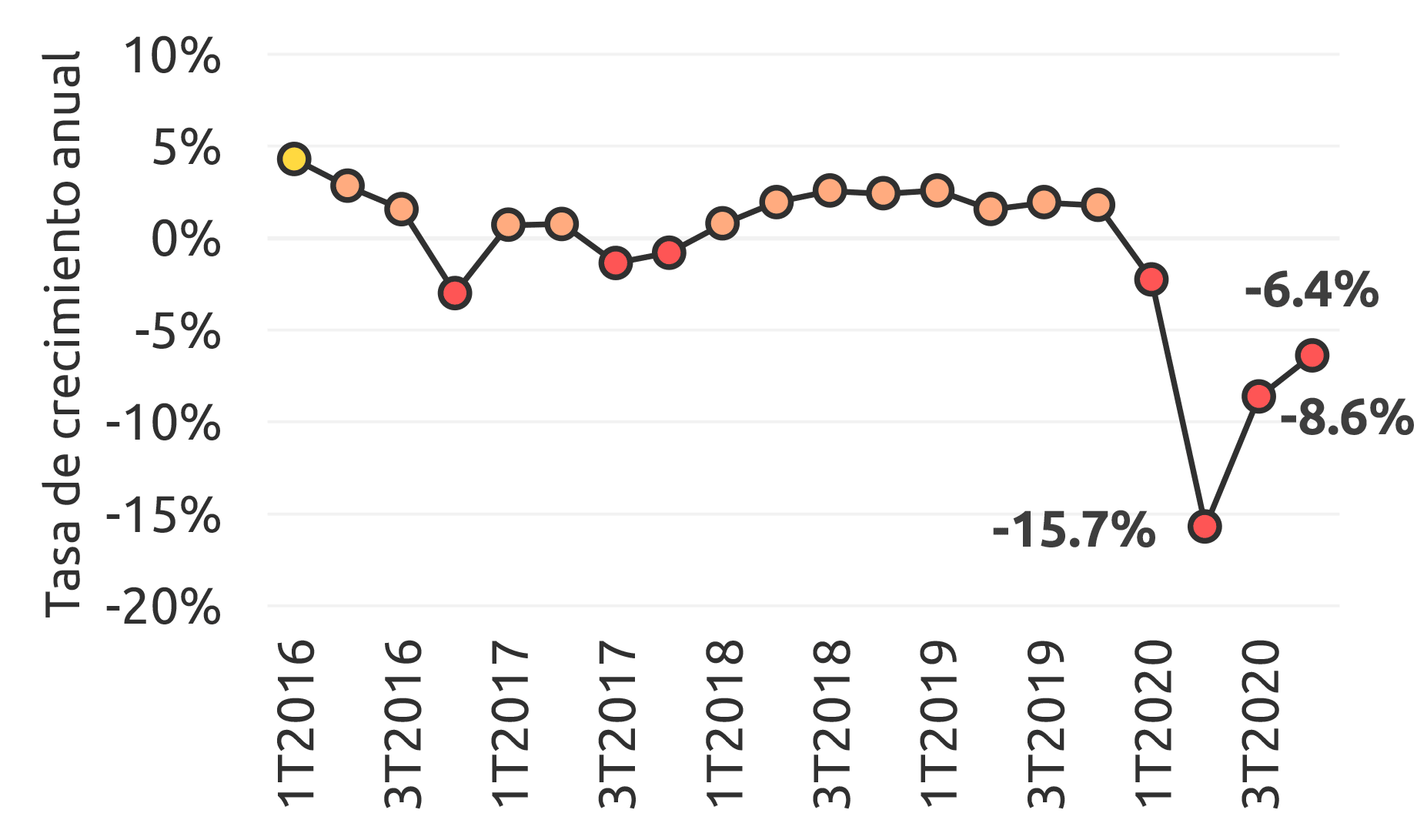 Durante 2020, la economía de Tamaulipas se contrajo (-)8.2 % anual, con una caída pronunciada en el 2T2020. Previo a esto, su economía había crecido a una tasa promedio de 1.3 % anual entre 2016 y 2019.